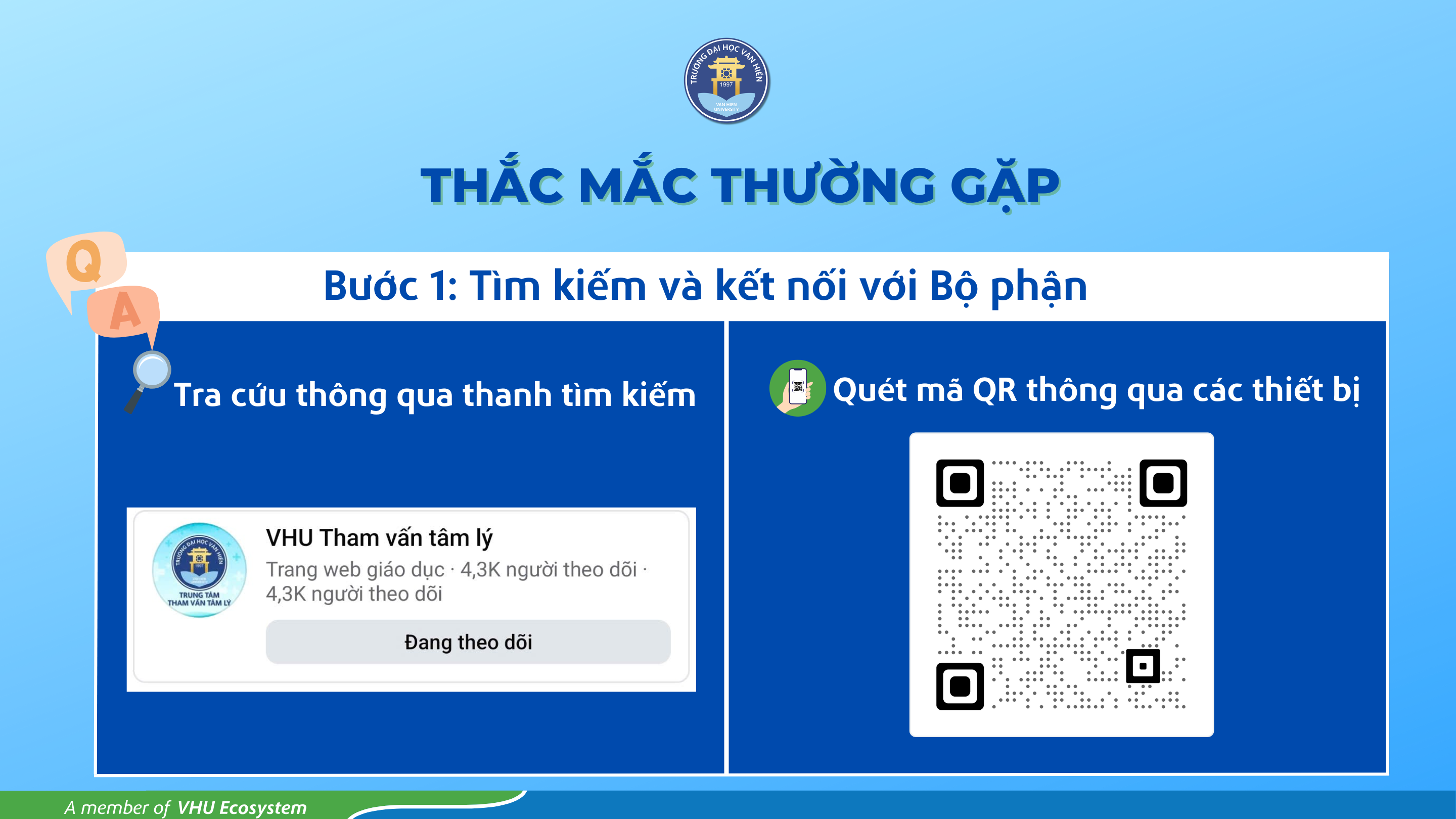 -Truy cập Fanpage "VHU Tham vấn Tâm lý" trên Facebook