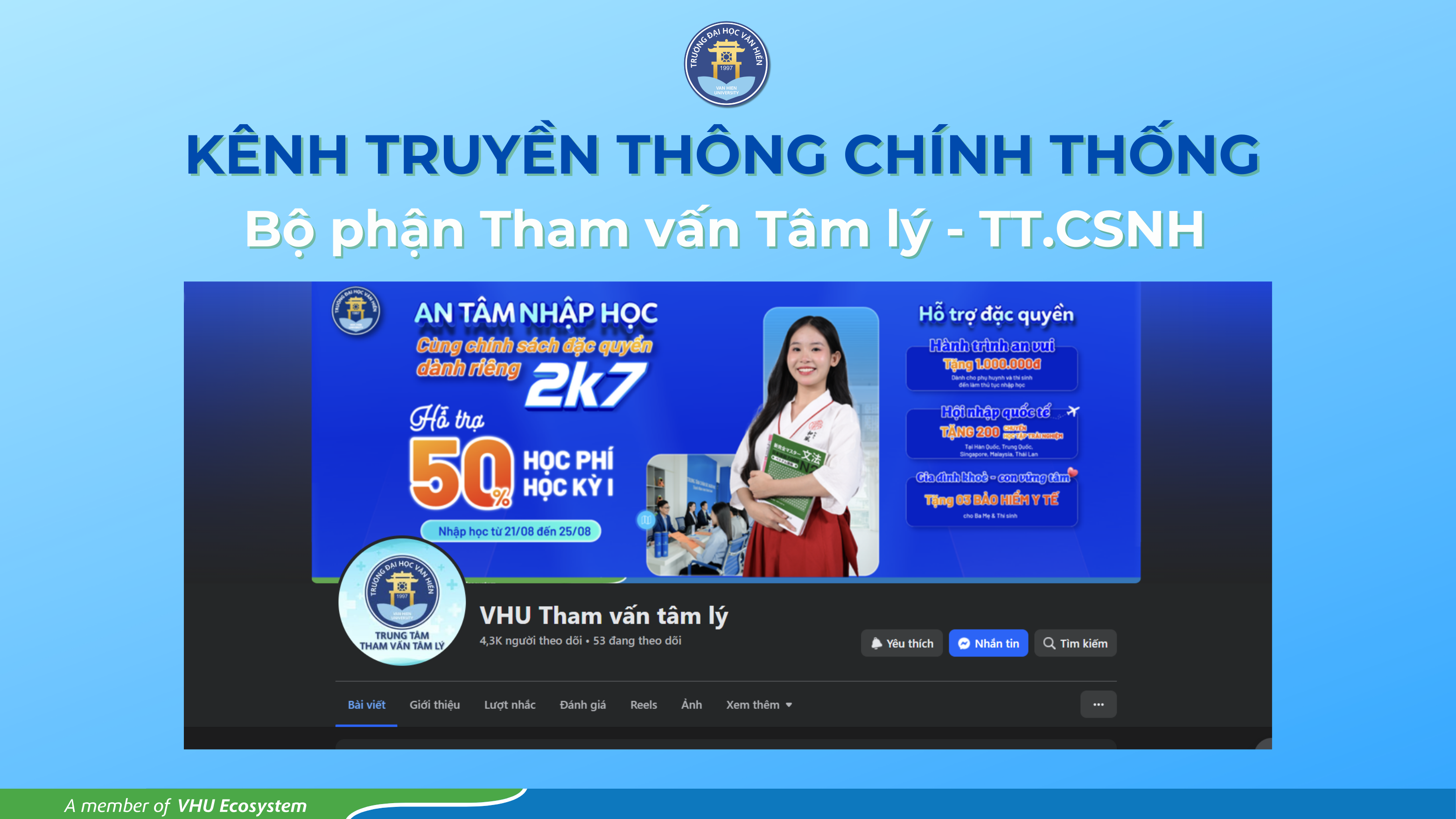 Kênh truyền thông chính thống của Bộ phận Tham vấn Tâm lý VHU